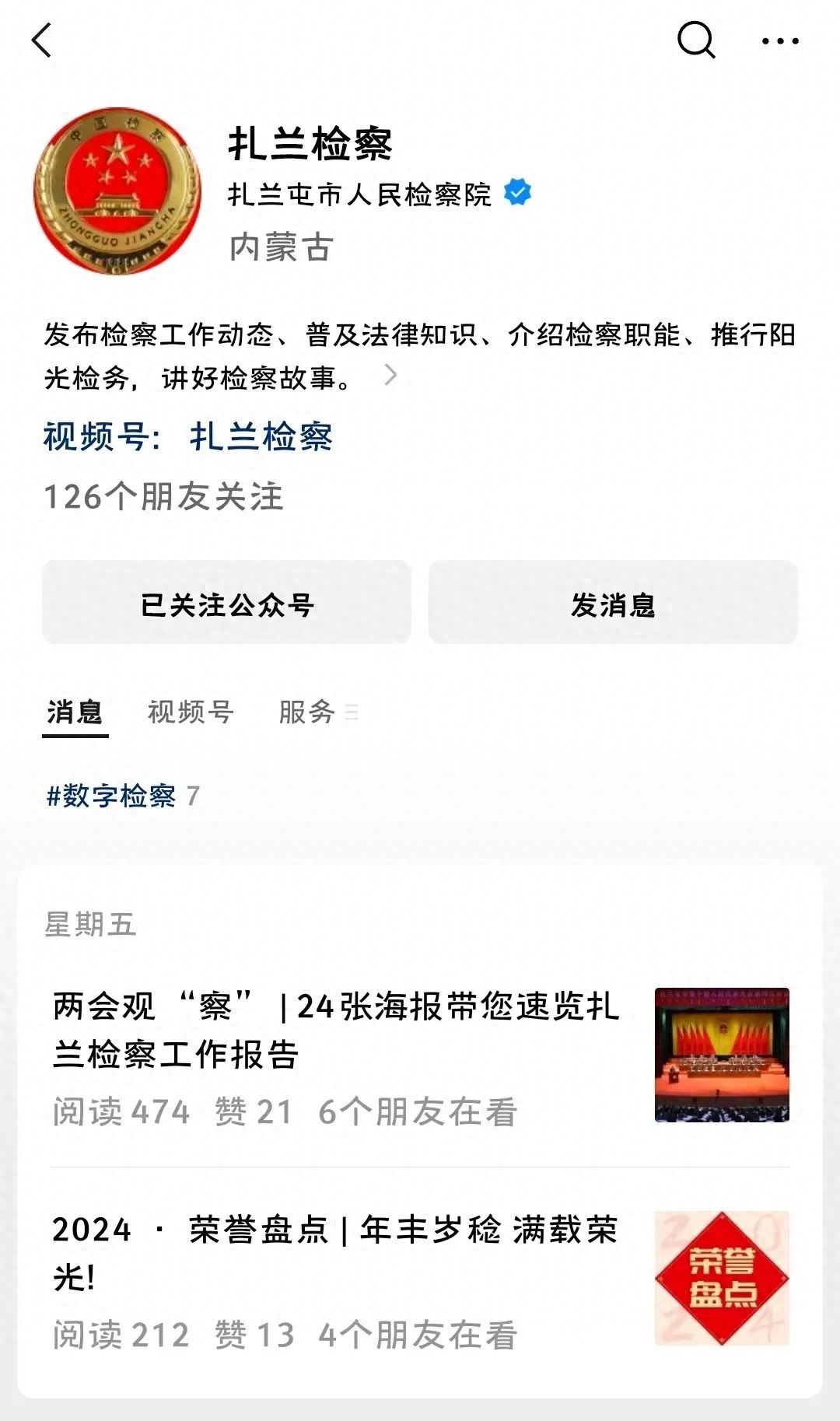 近日,扎兰检察微信公众号获评全区检察机关最具影响力新媒体;普法栏目《小蓝的日常》蝉联全区检察机关典型宣传案例;一名检察人员获评全区检察机关优秀通讯员。