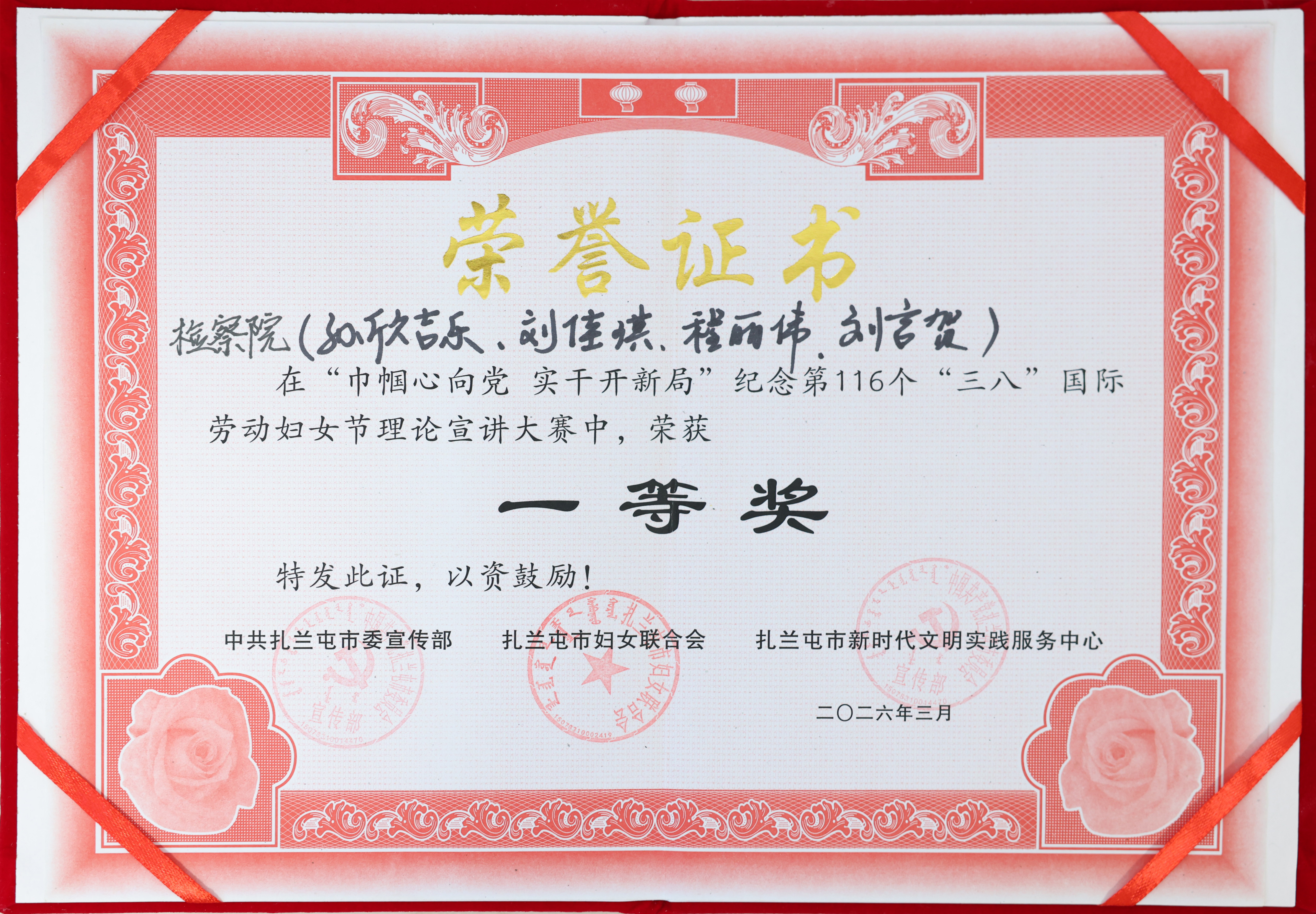 下一步,扎兰屯市检察院将以此次获奖为契机,持续擦亮“巾帼宣讲”特色品牌,让更多检察人员走上宣讲台,用生动故事讲好检察实践,用鲜活案例传播法治理念,为谱写中国式现代化建设扎兰屯篇章贡献更多检察智慧与巾帼担当!