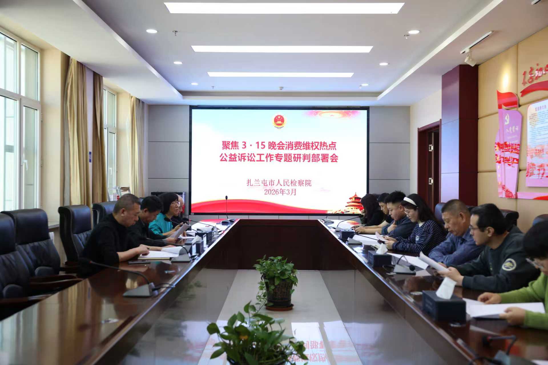 为切实维护消费者合法权益,充分发挥公益诉讼检察在消费维权领域的职能作用,3月16日,扎兰屯市检察院组织召开“聚焦3·15晚会消费维权热点 公益诉讼工作专题研判部署会”,结合检察职能以党小组形式开展集中学习研讨,明确下一步工作方向与落实举措。会议由院党组成员、副检察长叶晓刚主持,“塞外益检”办案团队全体成员参加会议。
