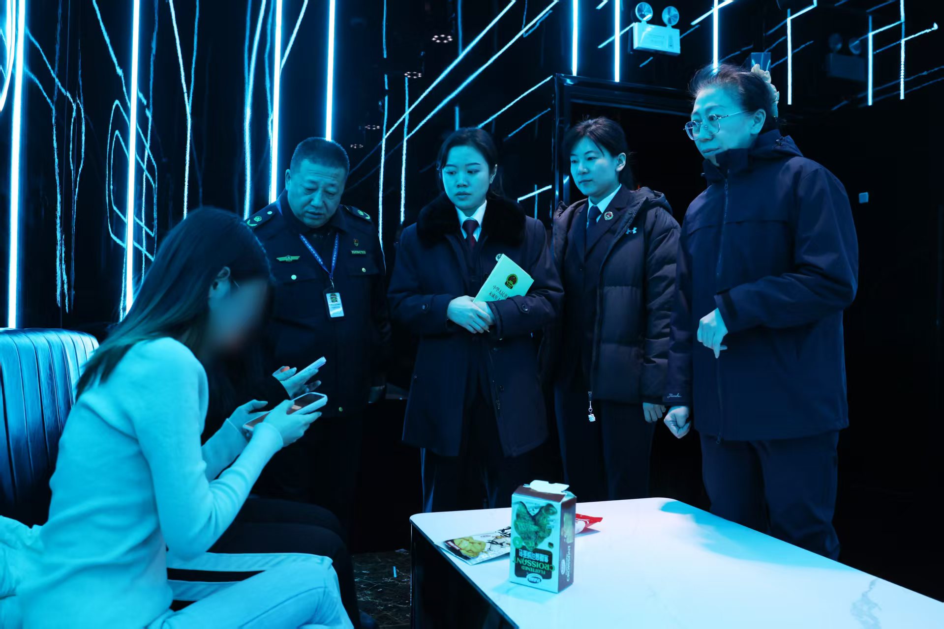 为深入贯彻落实未成年人保护法律法规,筑牢春节期间未成年人健康成长安全防线,同时规范娱乐场所经营秩序,以法治力量助推营商环境持续优化,2月13日,扎兰屯市检察院“青葵”未成年人检察办公室联合市文化和旅游局,深入辖区KTV等娱乐场所及街道重点区域,开展未成年人有偿陪侍、违规进入等问题专项检查行动,以联动履职彰显检察担当,以法治服务赋能行业发展。