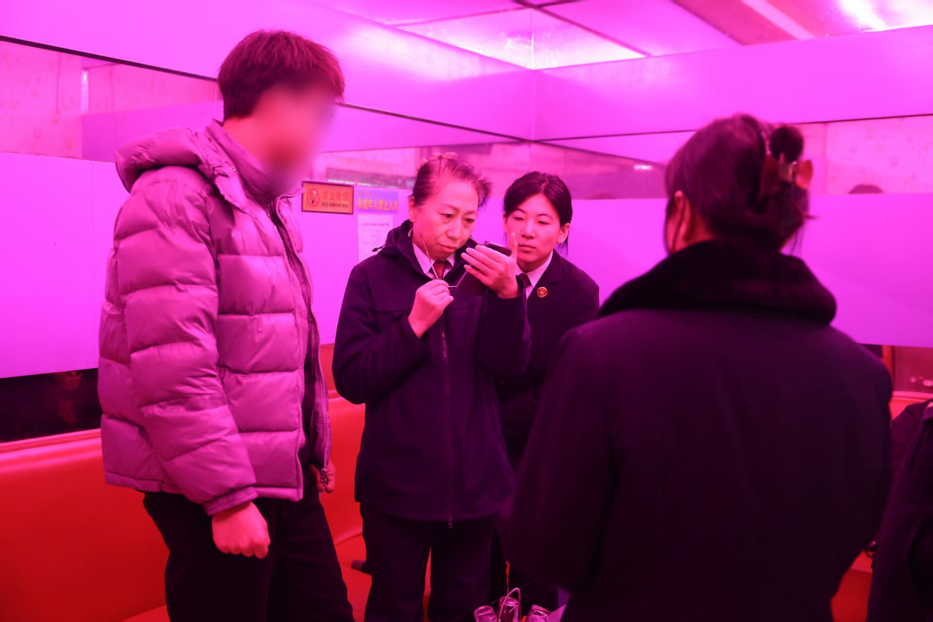 此次专项检查聚焦春节期间娱乐场所人流增多、未成年人保护风险加大的关键节点,坚持“检查与普法并行、监管与护航并重”的原则,重点排查辖区KTV娱乐场所是否存在未成年人违规进入、提供有偿陪侍等违法违规行为,是否在显著位置设置未成年人禁入警示标识,是否严格落实身份核验制度,切实堵塞未成年人保护监管漏洞。检查组先后深入12家娱乐场所,通过实地查看、现场询问、查阅台账等方式,对场所经营规范情况进行全面细致核查,对发现的薄弱环节现场提出整改指引,督促经营户立行立改、闭环落实,当场发现1件未成年人违规进入娱乐场所案件线索,目前行政机关正在进一步处理。